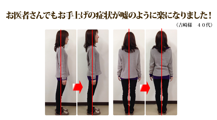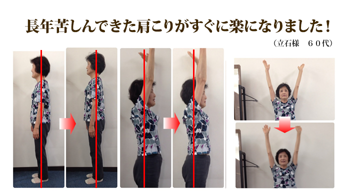 肩こりだけじゃなくて姿勢がシャンとして猫背がなくなります。これからも通いますので先生