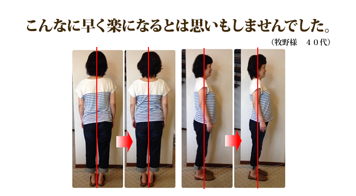 医者ではストレートネックの診断だけいただいていたけど、こんなにすっきりするなんて嘘みたいです。次回も、いえ、ずっとこれからもお願いします。